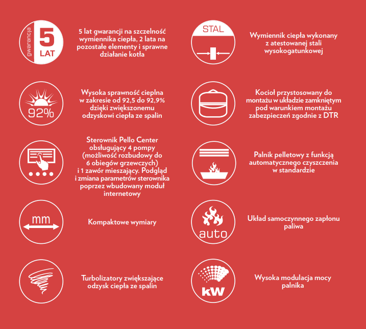 🔥 5 lat gwarancji na szczelność wymiennika – bezpieczeństwo i trwałość potwierdzona przez producenta.