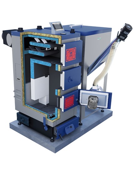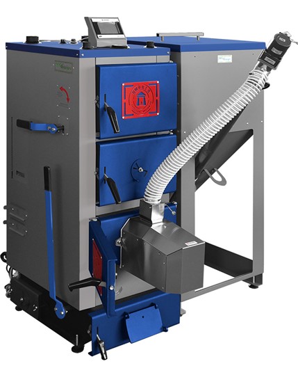 - Pojemność zasobnika opału: 65 kg (16,5 kW) lub 75 kg (23 kW) — mniej częste doładowywanie paliwa w trybie ręcznym