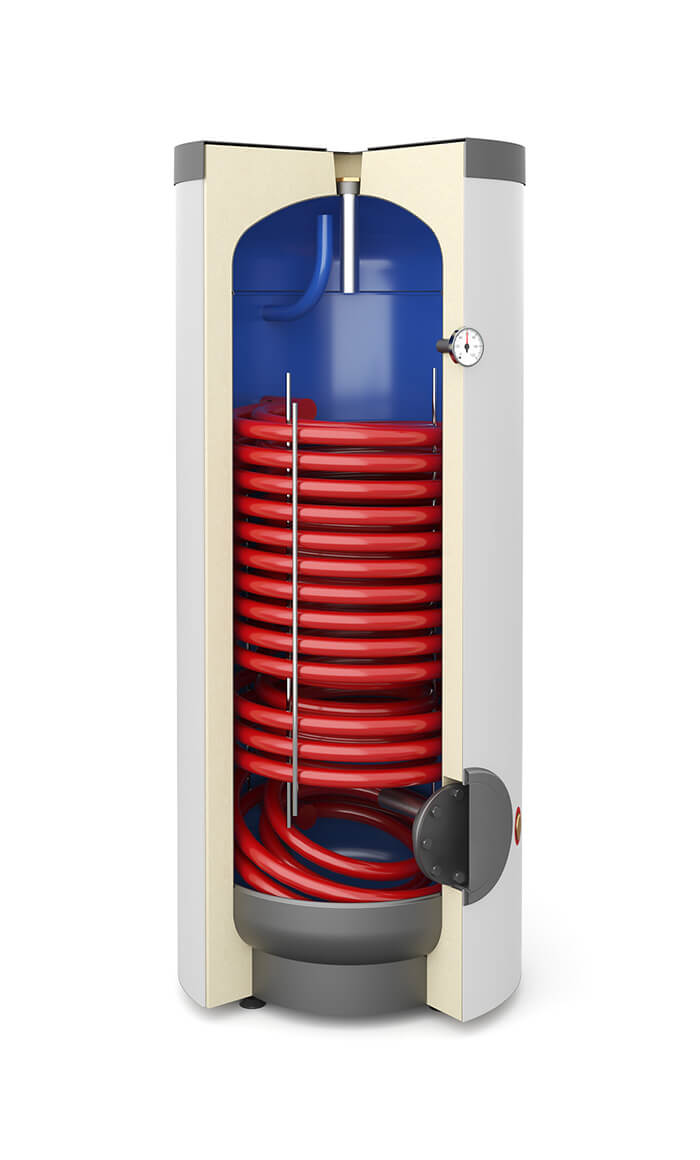 - Maksymalnie powiększona wężownica spiralna – zaprojektowana specjalnie do optymalnej współpracy z pompami ciepła